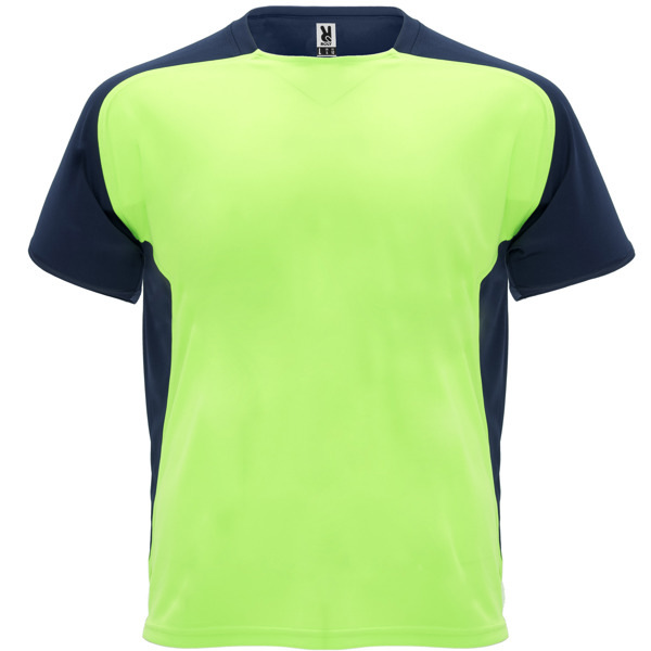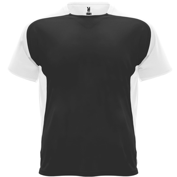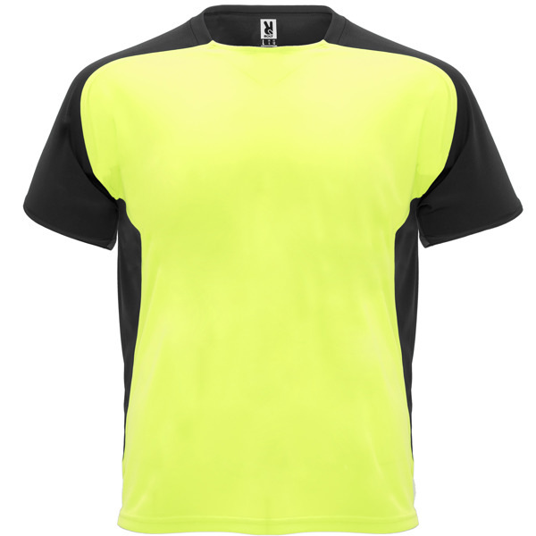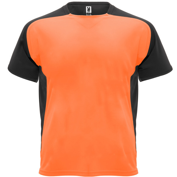 - T-shirt technique manches courtes raglan. 1. Col rond avec bande de propreté ton sur ton. 2. Manches et panneaux latéraux contrastés.