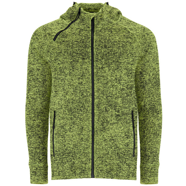 Veste en maille molleton avec capuche et manche raglan. Capuche avec col montant et ajusteurs style sportif. Zip central et extra en col injecté. Deux poches frontales avec zip. Dos plus long que le devant avec ajusteur interieur latérale. Print code: N(8), O2, P 100% polyester, maille molleton gratté, 280 g/m².